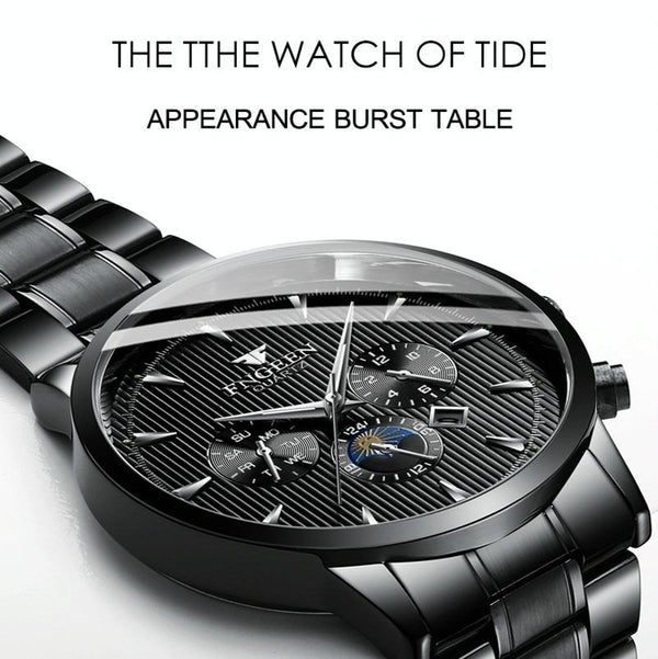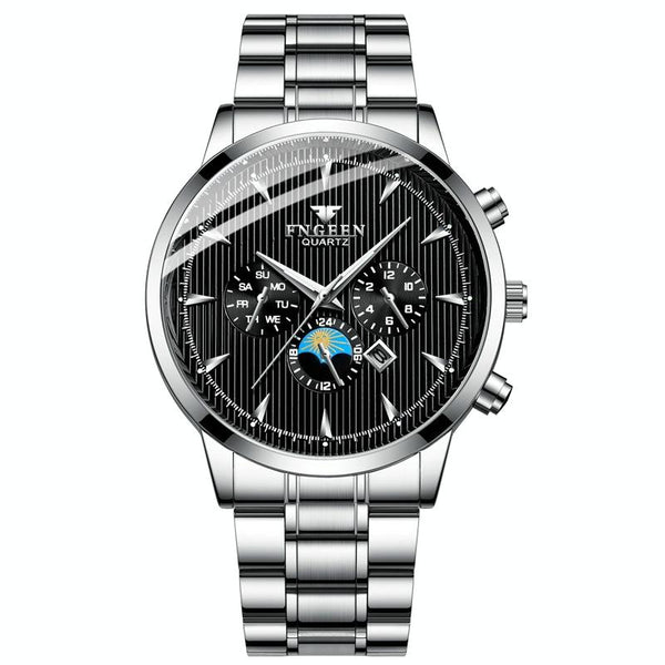 FNGEEN 5781 Multifunction Sports Waterproof Quartz Watch(White Steel Black Surface)