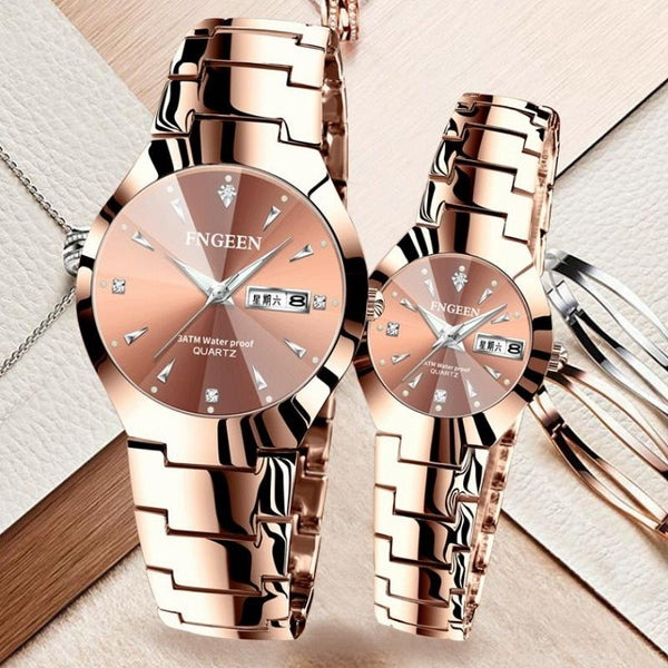FNGEEN 5808 Men Fashion Steel Strap Quartz Watch Couple Watch(Black Steel Black Surface)