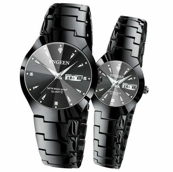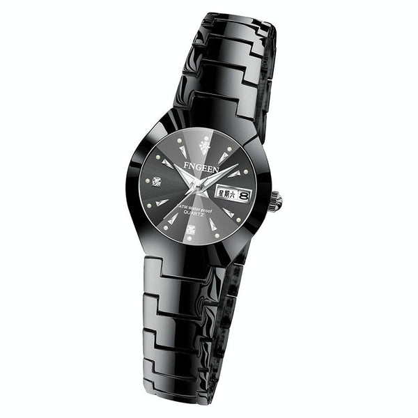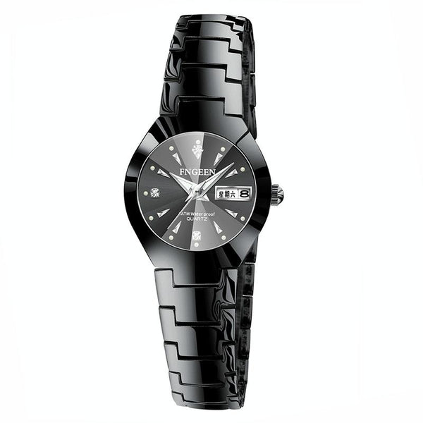 FNGEEN 5808 Women Fashion Steel Strap Quartz Watch Couple Watch(Black Steel Black Surface)