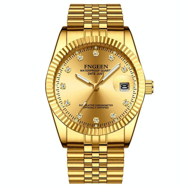 FNGEEN 7008 Men Fashion Diamond Dial Watch Couple Watch(Full Gold Gold Surface)