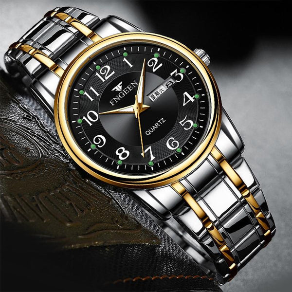 FNGEEN 7888 Large Digital Dial Quartz Steel Band Watch(Gold Black Surface)