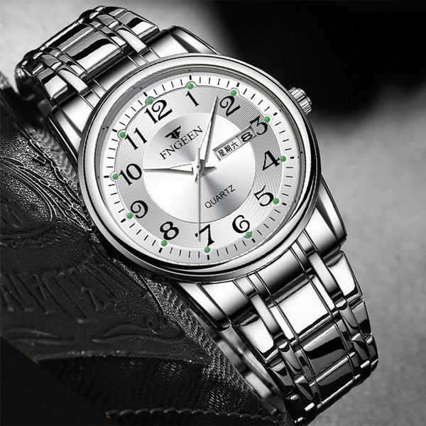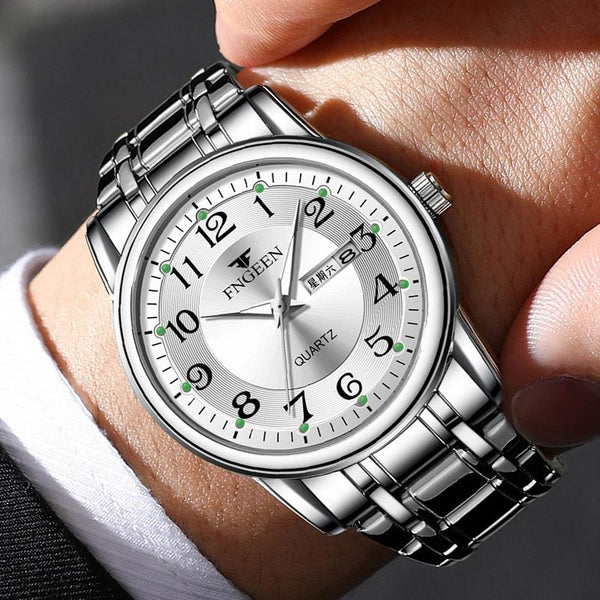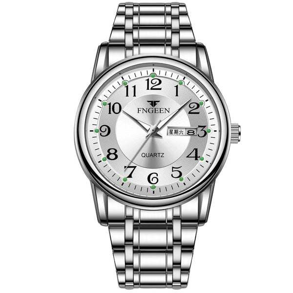 FNGEEN 7888 Large Digital Dial Quartz Steel Band Watch(White Steel White Surface)