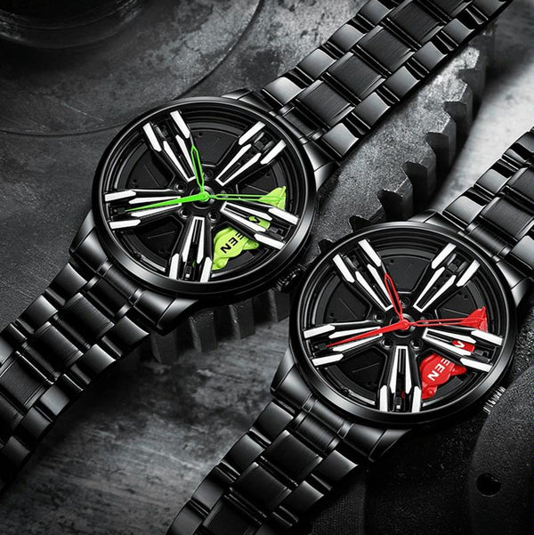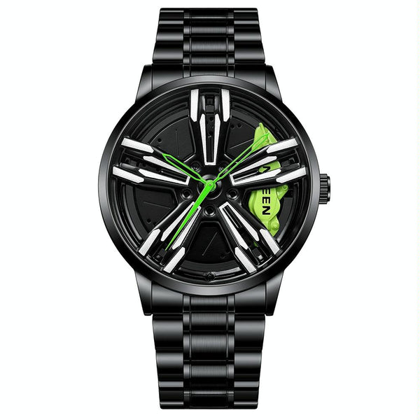 FNGEEN L001 Motorcycle Element Rotating Hub Metal Men Watch(Black Steel Green Surface)