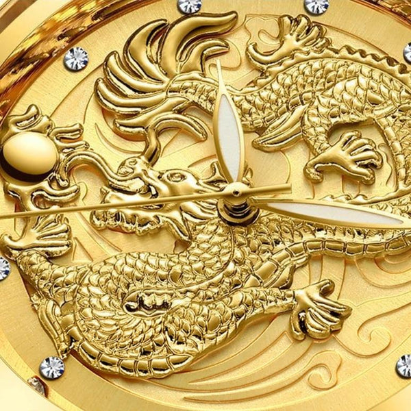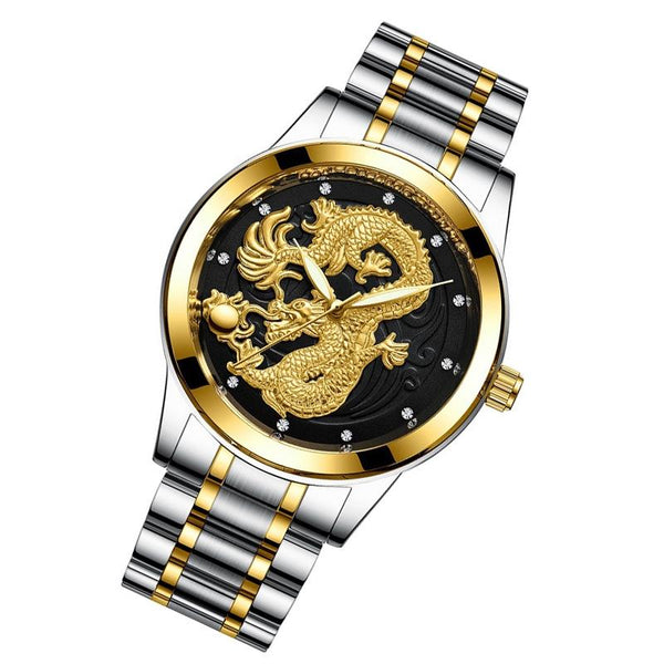 FNGEEN S666 Waterproof Luminous Watch Quartz Ultra-Thin Dragon Or Phoenix Pattern Couple Watch(Between Gold Black Surface)