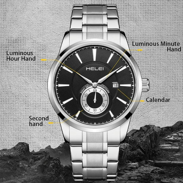 HELEI H9009B-G Night Light Waterproof Men Quartz Watch(Rose Gold White)