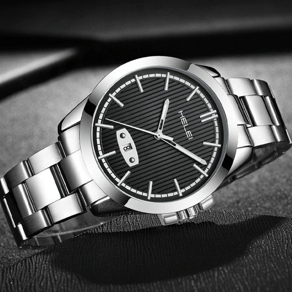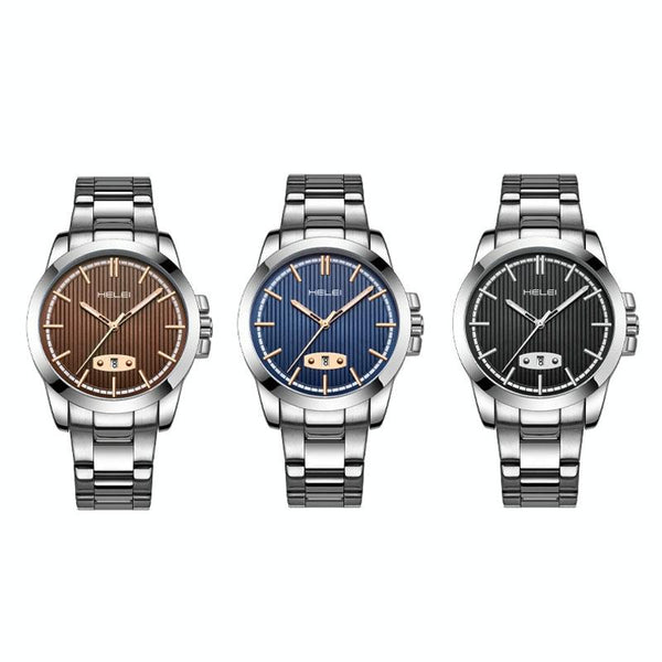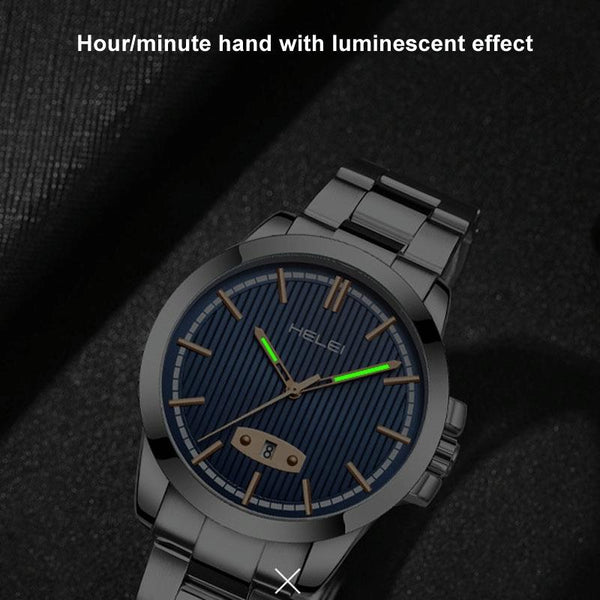 HELEI H9026A-G Men Waterproof Quartz Watch Stainless Steel Calendar Automatic Display Watch(Blue)