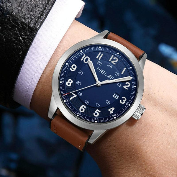 HELEI H9031B-L Men Quartz Watch Waterproof Outdoor Sports Watch(Silver Blue Coffee)