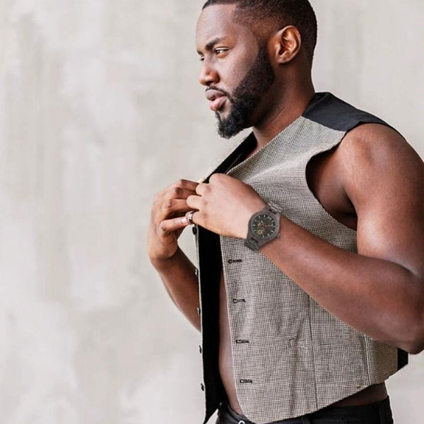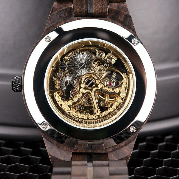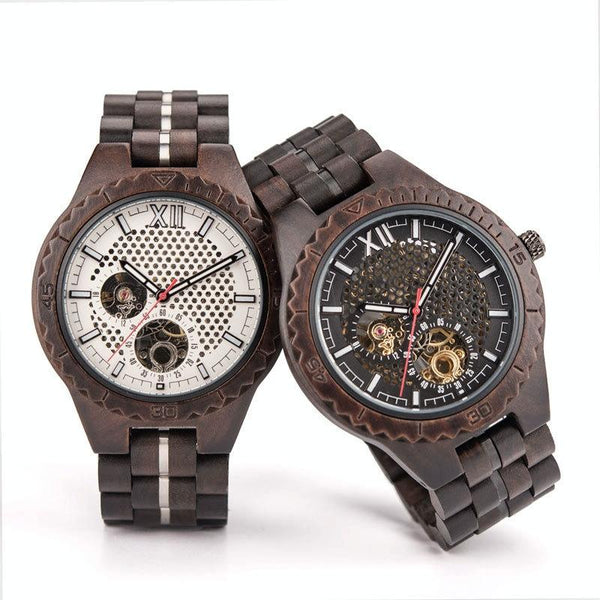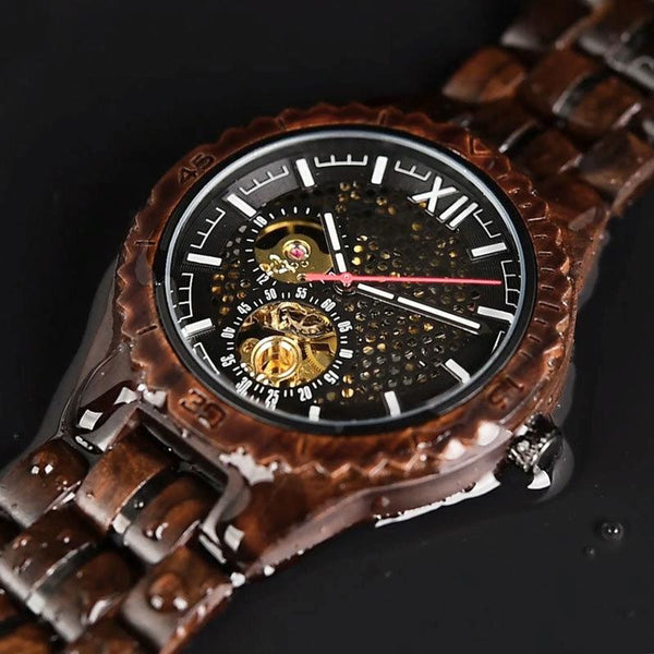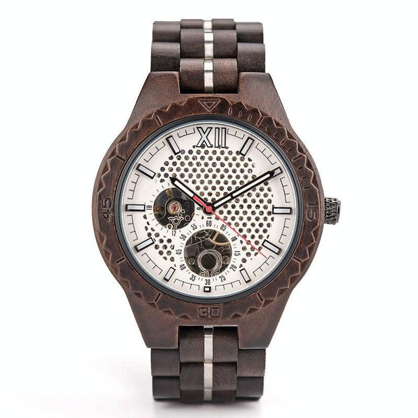 Hollow Dial Wooden Strap Men Mechanical Watch(D27-2)