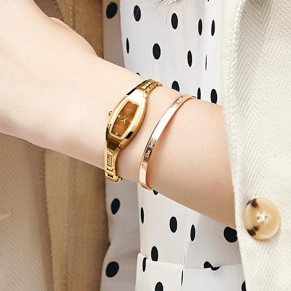 JIN SHI DUN 6530 Women Fashion Dual Calendar Luminous Quartz Watch(Gold)