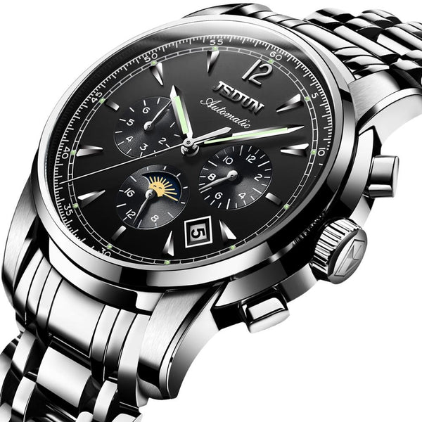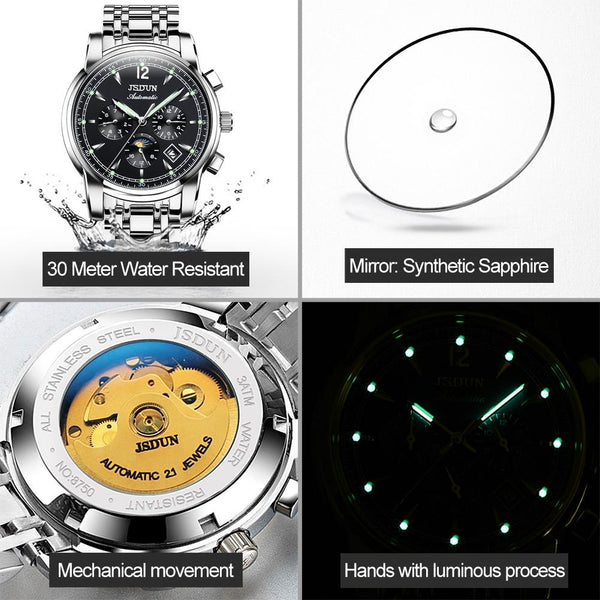 JIN SHI DUN 8750 Men Fashion Waterproof Luminous Mechanical Watch(Silver Black)