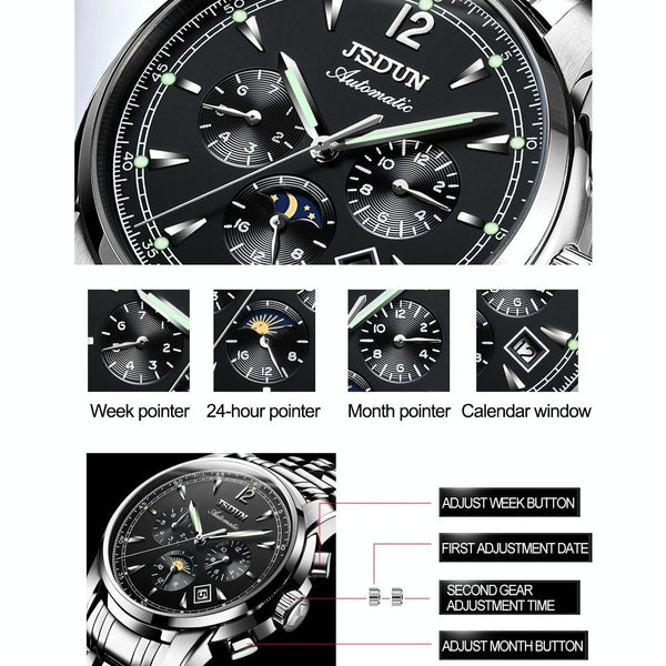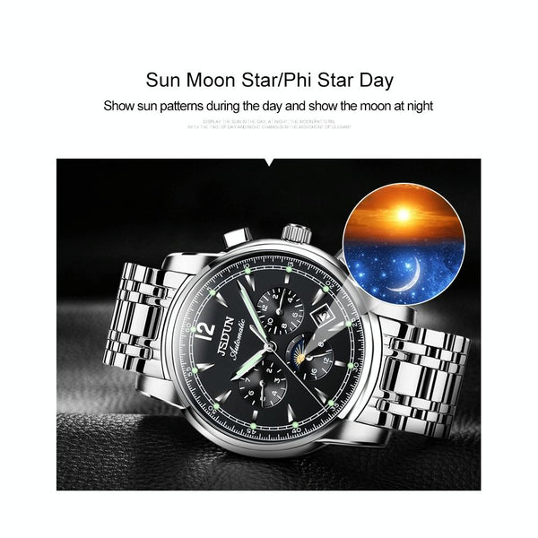 JIN SHI DUN 8750 Men Fashion Waterproof Luminous Mechanical Watch(Silver Blue)