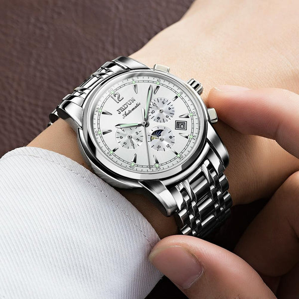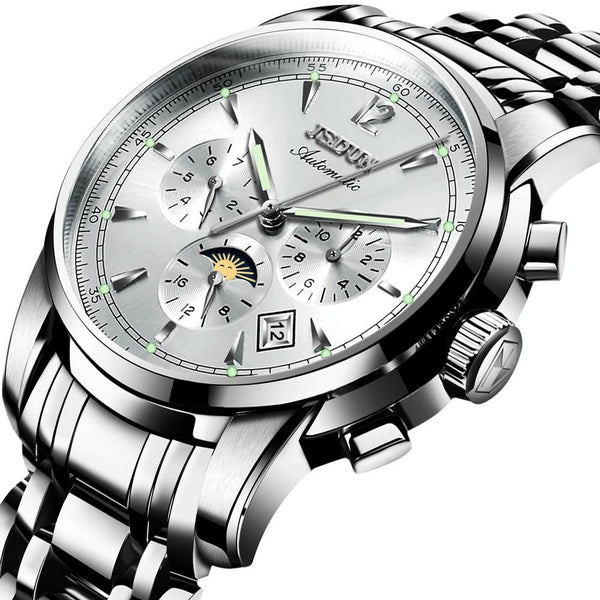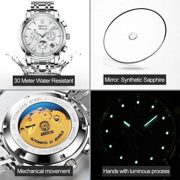 JIN SHI DUN 8750 Men Fashion Waterproof Luminous Mechanical Watch(Silver White)