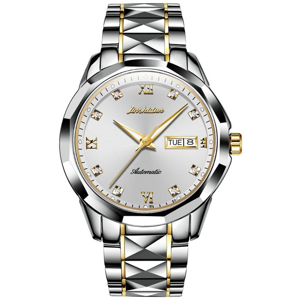 JIN SHI DUN 8813 Fashion Waterproof Luminous Automatic Mechanical Watch, Style:Men(Silver Gold White)