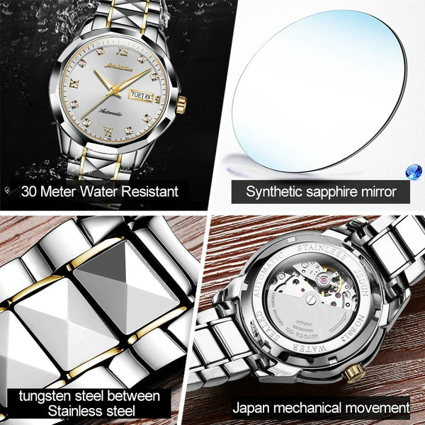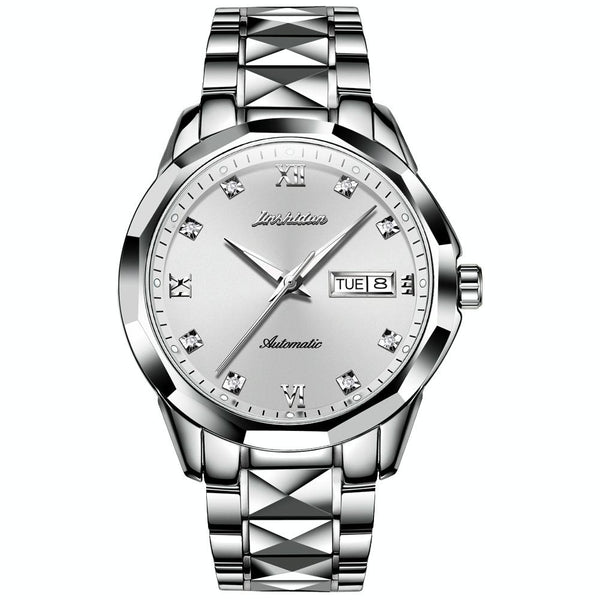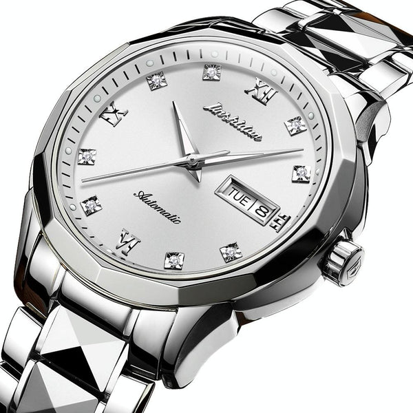 JIN SHI DUN 8813 Fashion Waterproof Luminous Automatic Mechanical Watch, Style:Men(Silver White)