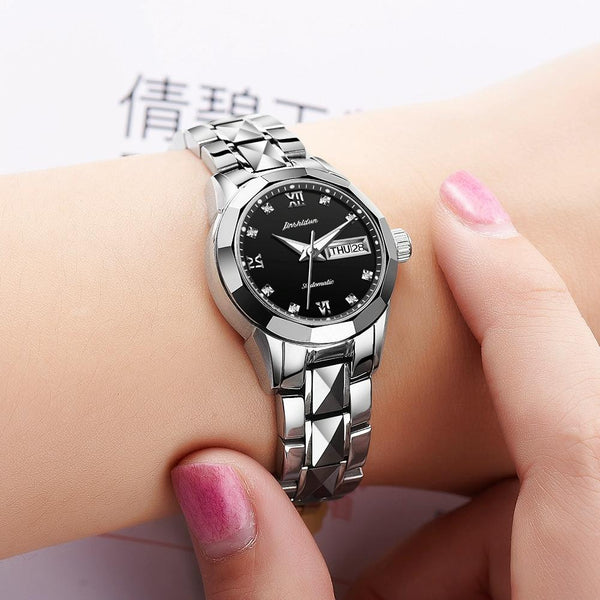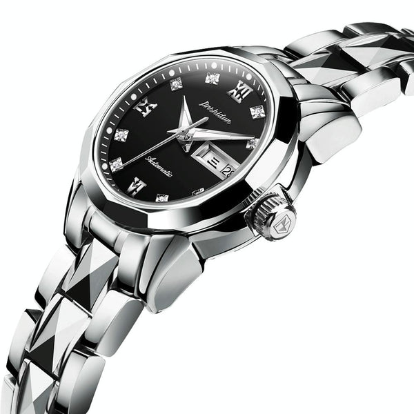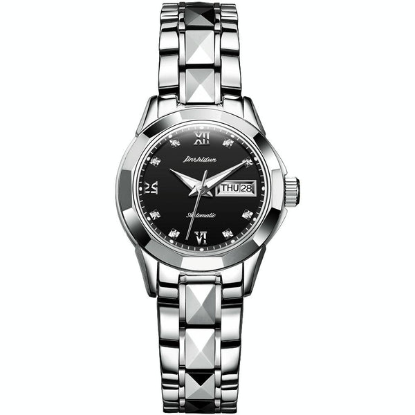 JIN SHI DUN 8813 Fashion Waterproof Luminous Automatic Mechanical Watch, Style:Women(Silver Black)