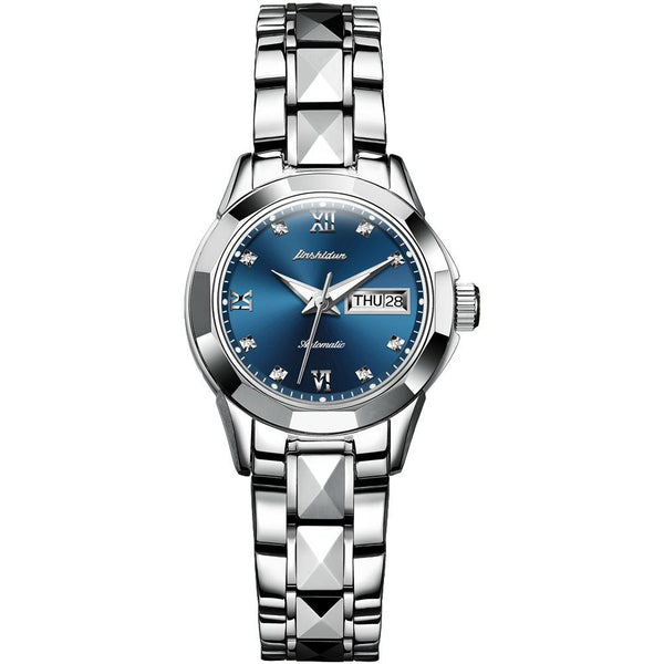 JIN SHI DUN 8813 Fashion Waterproof Luminous Automatic Mechanical Watch, Style:Women(Silver Blue)