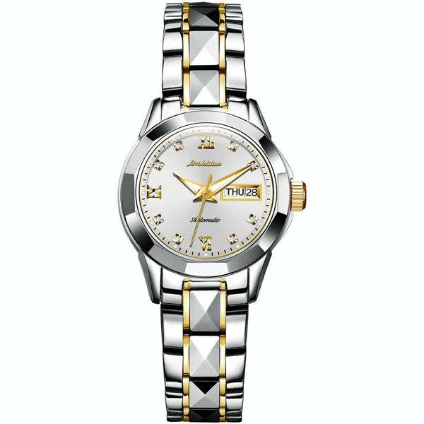 JIN SHI DUN 8813 Fashion Waterproof Luminous Automatic Mechanical Watch, Style:Women(Silver Gold White)
