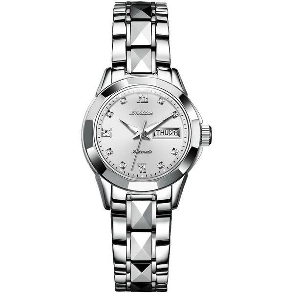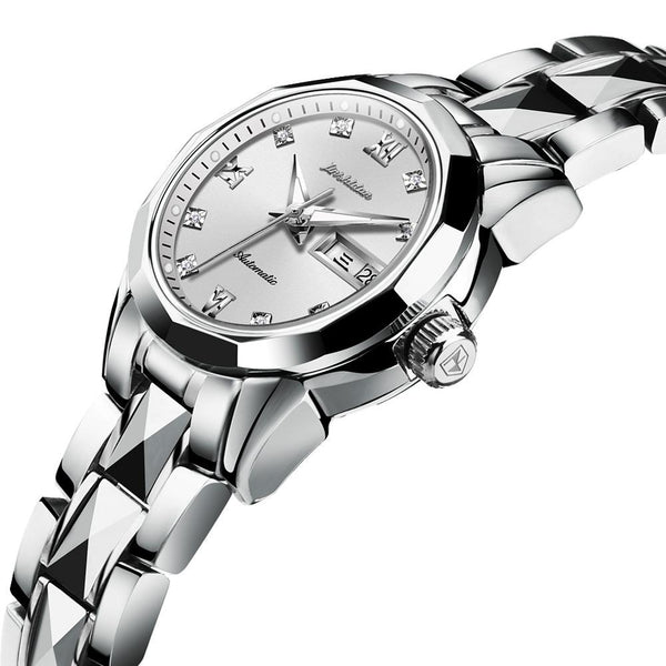 JIN SHI DUN 8813 Fashion Waterproof Luminous Automatic Mechanical Watch, Style:Women(Silver White)