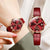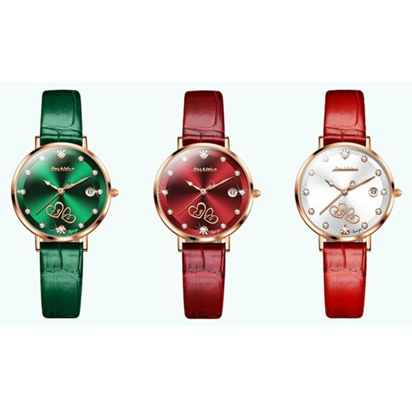 JIN SHI DUN 8825 Love Heart Digital Pattern Round Diamond Dial Quartz Couple Watch(Wine Red)