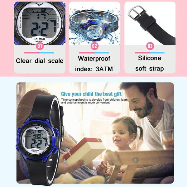 JNEW 9688-6 Children Multi-Function Colorful Backlight Waterproof Sports Electronic Watch(Rose Red)
