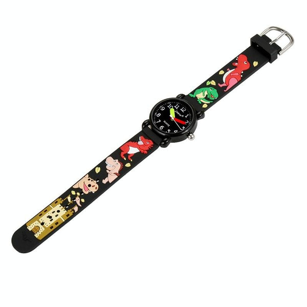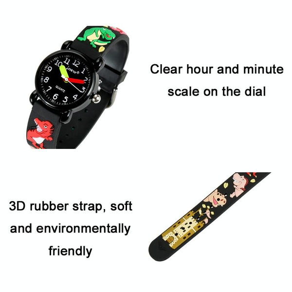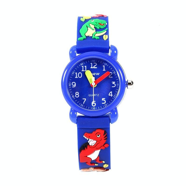 JNEW A335-86172 Children Cute Cartoon 3D Dinosaur Waterproof Silicone Strap Quartz Watch(Rubber Shell Blue)