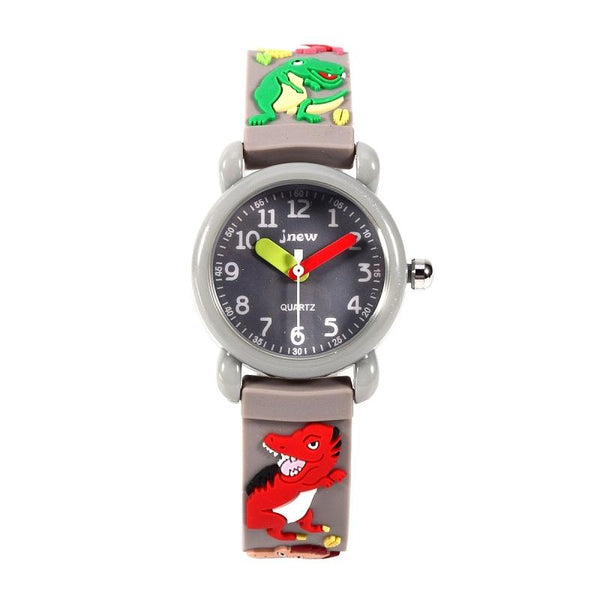 JNEW A335-86172 Children Cute Cartoon 3D Dinosaur Waterproof Silicone Strap Quartz Watch(Rubber Shell Gray)