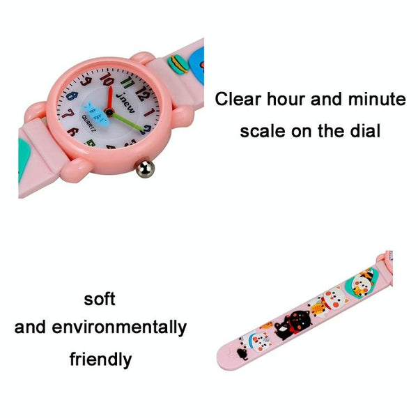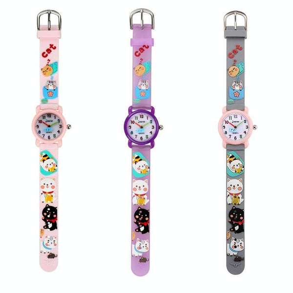 JNEW A335-86192 Children 3D Silicone Cute Cartoon Scheming Cat Waterproof Quartz Watch(Pink)