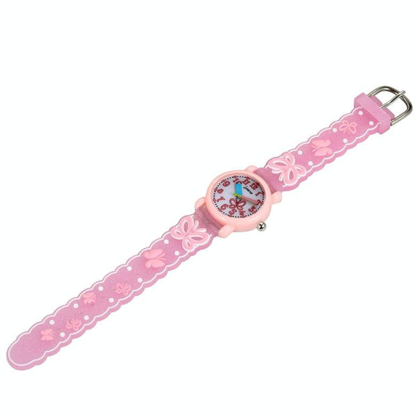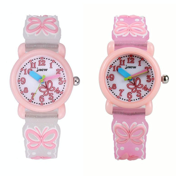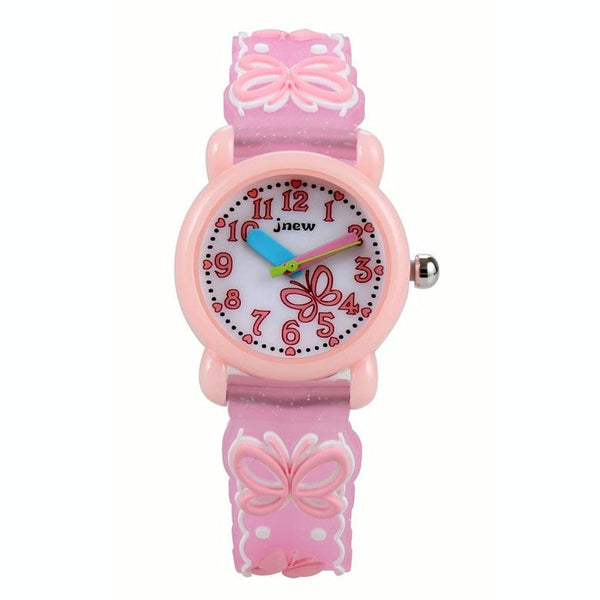 JNEW A335-86228 Children Cartoon 3D Love Butterfly Silicone Waterproof Quartz Watch(Pink Shell Pink Belt)