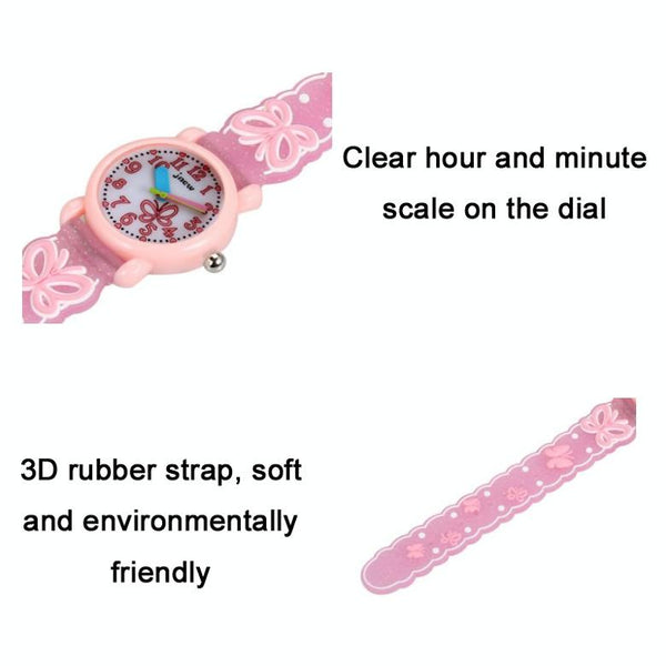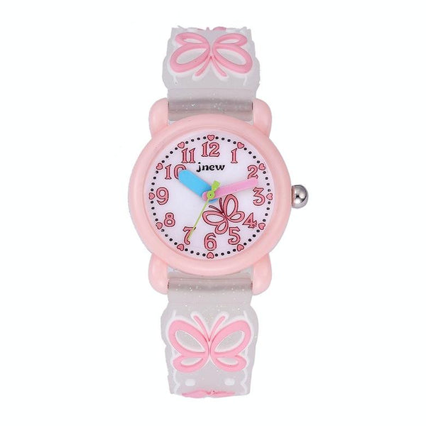 JNEW A335-86228 Children Cartoon 3D Love Butterfly Silicone Waterproof Quartz Watch(Pink Shell White Belt)