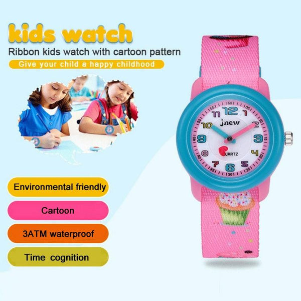 JNEW A369-86306 Children Time Cognition Waterproof Cartoon Ribbon Quartz Watch(Ice Ccream)