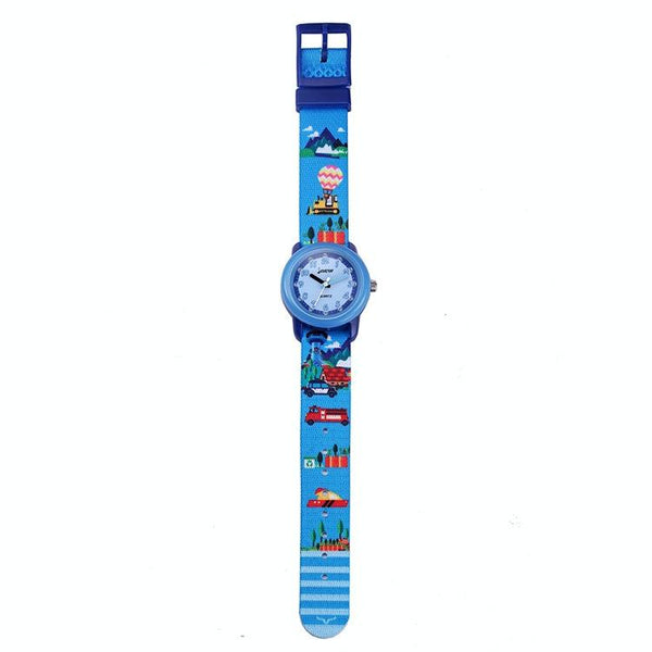 JNEW A369-86370 Children Cartoon Waterproof Time Cognitive Ribbon Quartz Watch(Amusement Park)