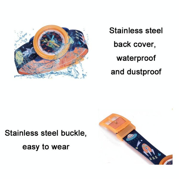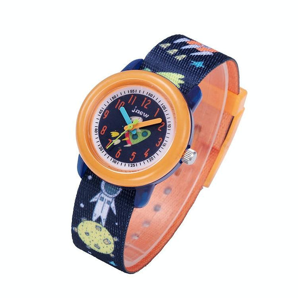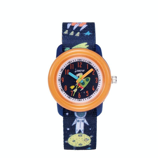 JNEW A369-86408 Children Cartoon Cosmic Starry Sky Waterproof Time Cognitive Ribbon Quartz Watch(Orange)