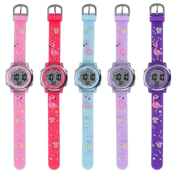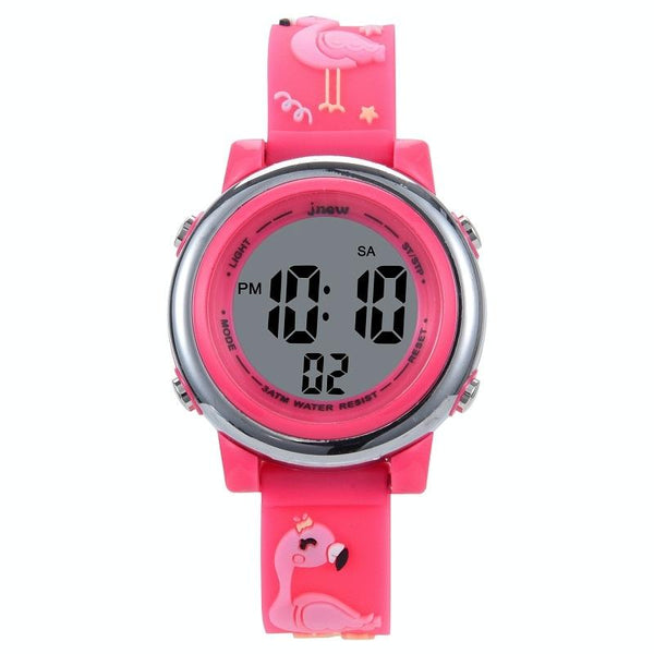 JNEW A380-86576 Student Cartoon Flamingo Waterproof Luminous Multifunction LED Electronic Watch(Rose Red)