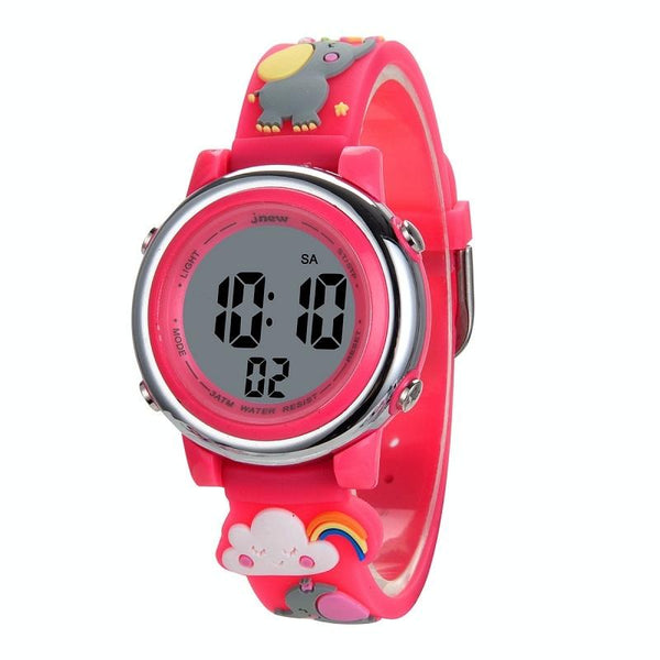 JNEW A380-86664 Children Cartoon 3D Happy Small Elephant Alarm Waterproof Sports LED Digital Watch(Red)