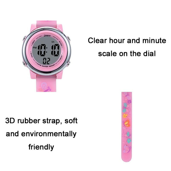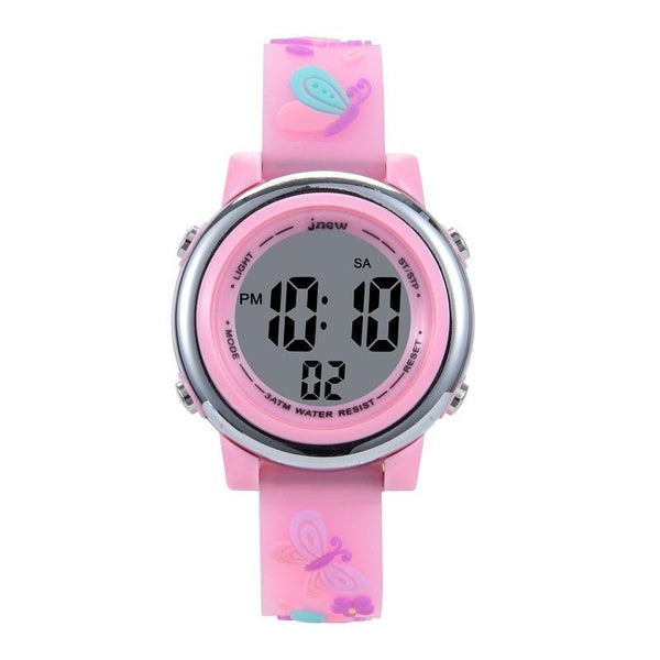 JNEW A86628 Student Cartoon 3D Butterfly Multi-Function Waterproof LED Sports Electronic Watch(Pink)