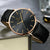 KEMANQI Simple Ultra-thin Waterproof Steel Mesh Belt Quartz Watch for Men(Ultra-thin Rose gold shell black dial black band)