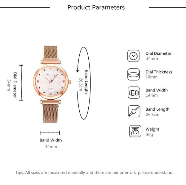 Ladies Magnet Buckle Watch Casual Flower Dial Watch Alloy Mesh Quartz Watch(Black+No.2 Bracelet)