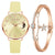 Ladies Moon Pattern Dial PU Strap Quartz Watch, Color: Yellow+Bracelet