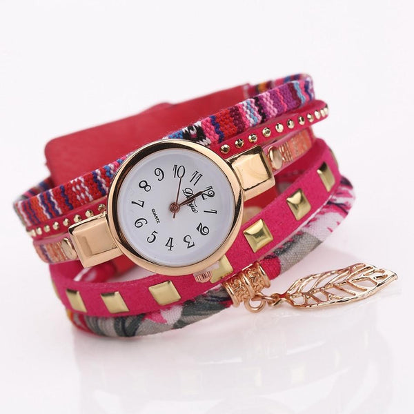 Ladies Quartz Bracelet Watch with Leaf Shape Pendant(Rose Red)