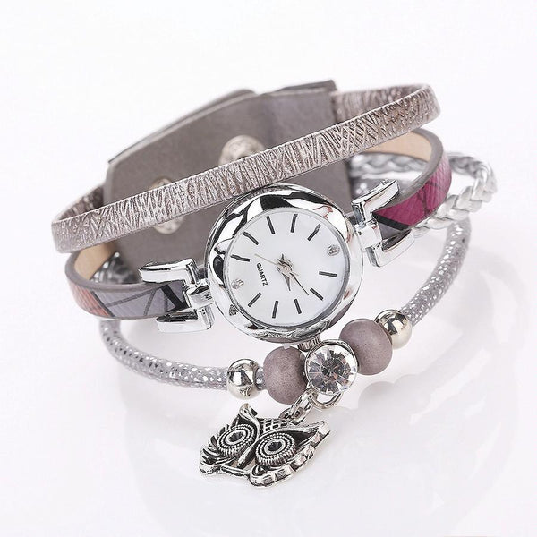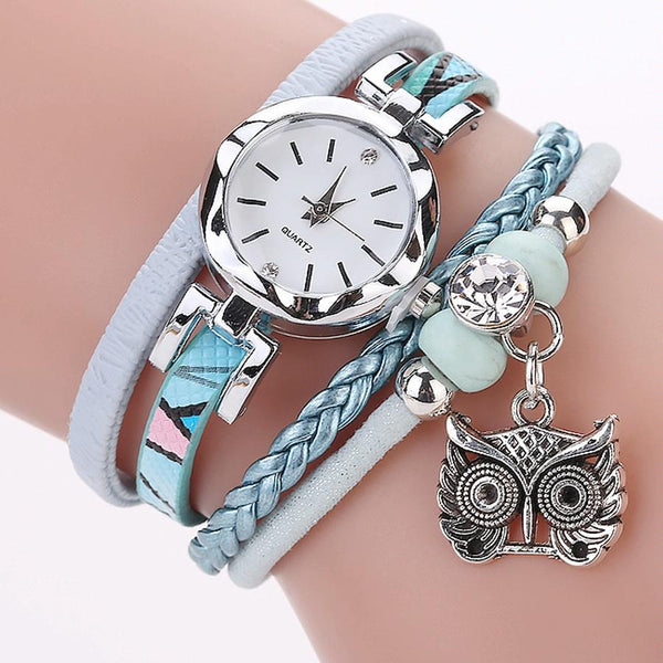 Ladies Small Dial Circle Owl Pendant Bracelet Watch(Milk White)