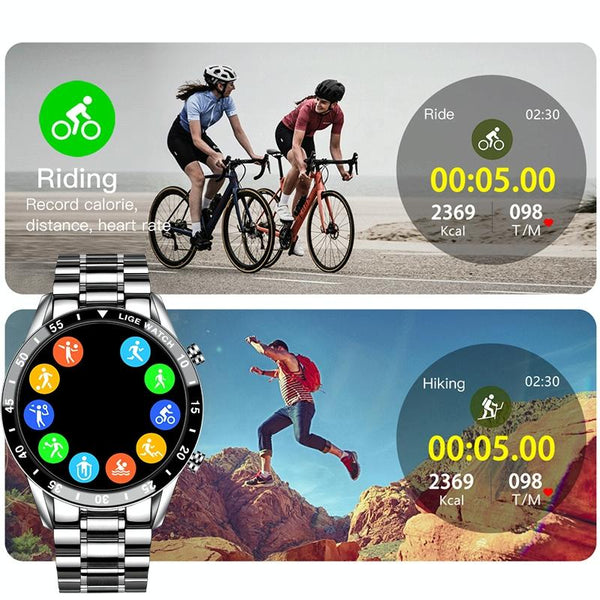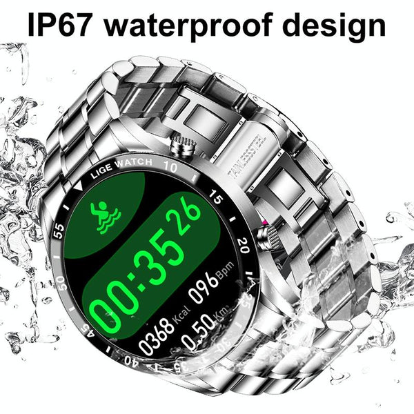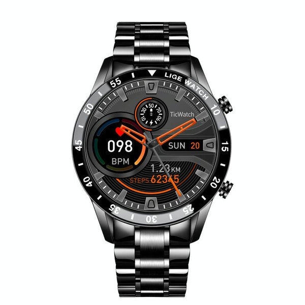 LIGE 0175 Bluetooth Step Perseverance Detection Smart Watch, Style: Steel Belt (Black)