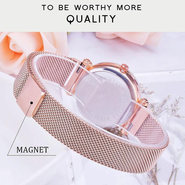 Luxury Mesh Ladies Clock Magnet Buckle Starry Diamond Geometric Quartz Wristwatch Women Watches(Blue)