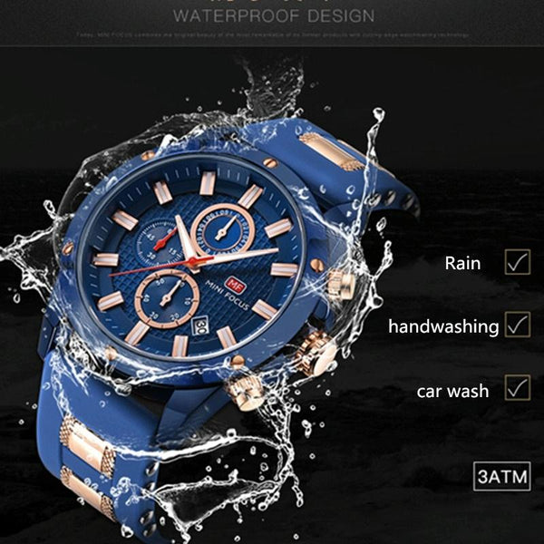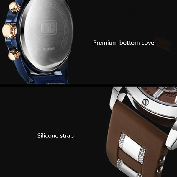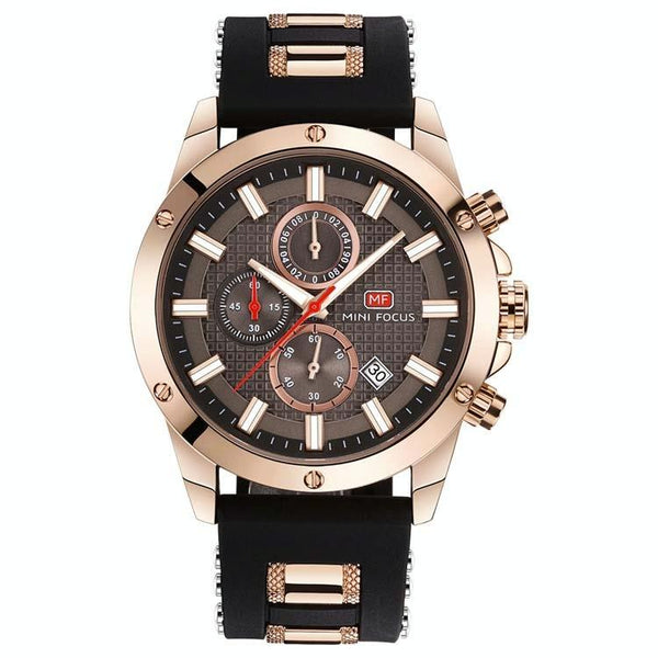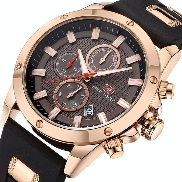 MINI FOCUS MF0089G Waterproof Quartz Watch Luminous Men Sports Watch(Coffee Surface Gold Shell Black Belt)