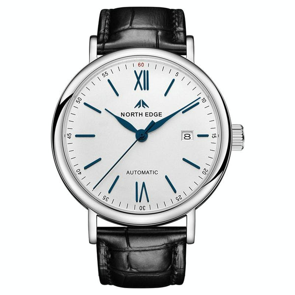 NORTH EDGE AMOY Multifunctional Business Men's Watch Waterproof Leather Mechanical Watch(Blue Needle)