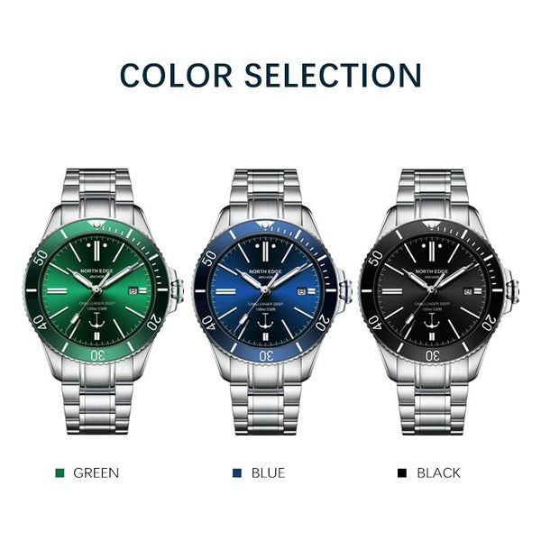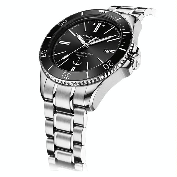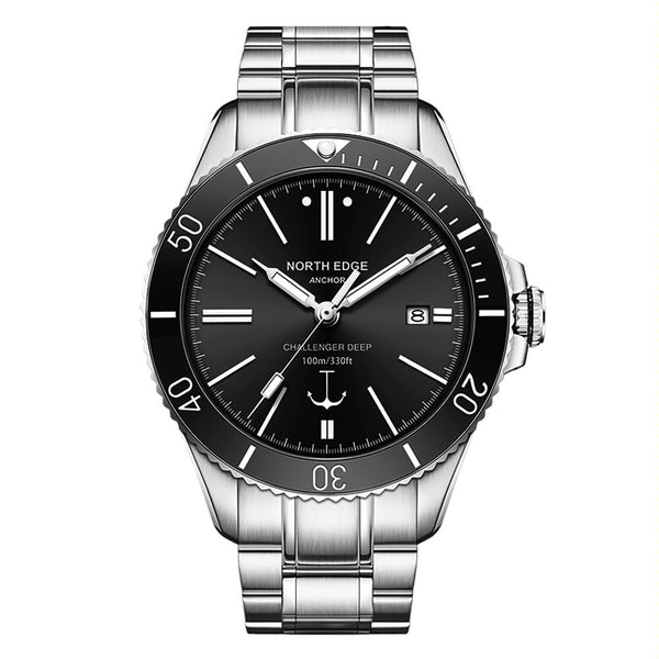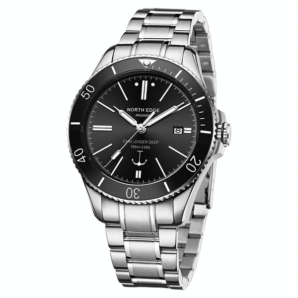 NORTH EDGE ANCHOR Men Outdoor 100m Waterproof Mechanical Watch(Black)