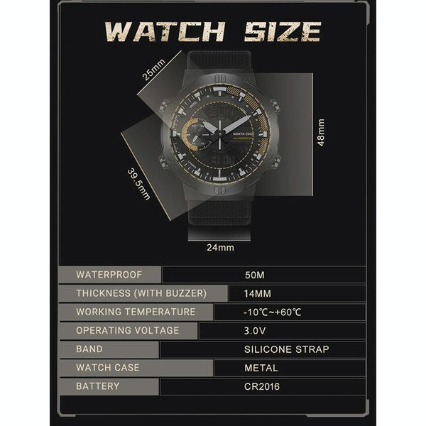 NORTH EDGE HORNET Dual Digital Alarm Clock Timing Men Luminous Sports Watch(Grey)