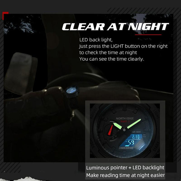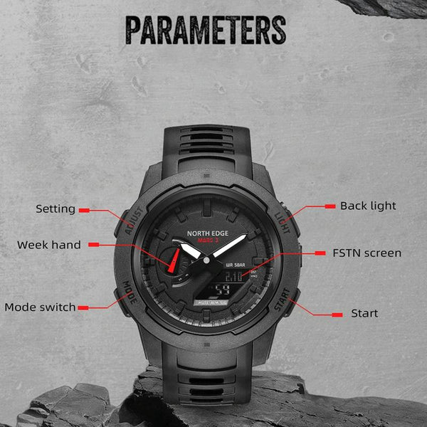 NORTH EDGE MARS3 Outdoor Waterproof Men Carbon Fiber Electronic Sports Watch(Black)