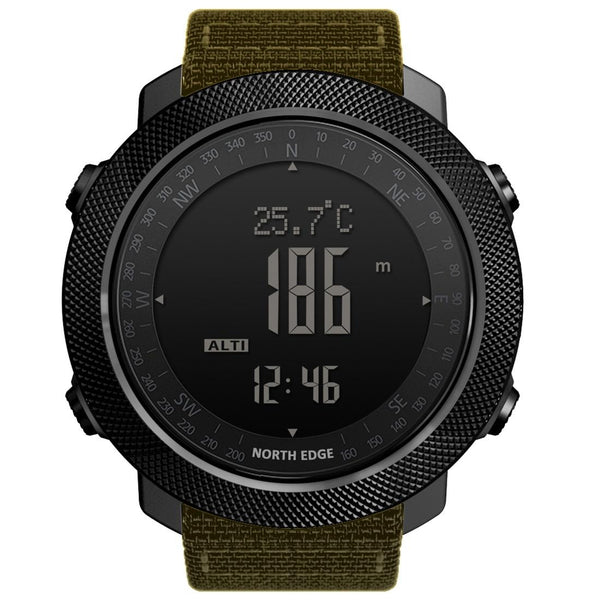 NORTH EDGE Multi-function Waterproof Outdoor Sports Electronic Smart Watch, Support Humidity Measurement / Weather Forecast / Speed Measurement, Style: Nylon Strap(Khaki)