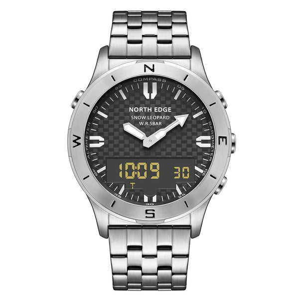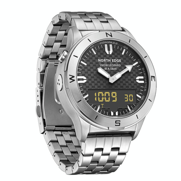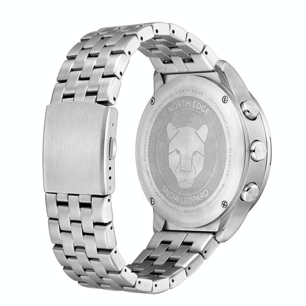 NORTH EDGE Snow-Leopard Outdoor Waterproof Men Multifunction Stainless Steel Strap Smart Watch(Silver)