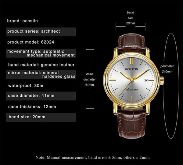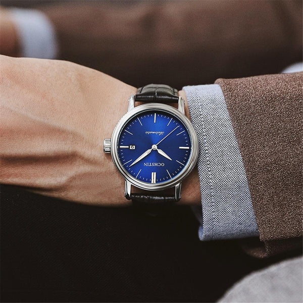 Ochstin 2024 Automatic Mechanical Watch Men Waterproof Calendar Leather Business Mechanical Men Watch(Blue)